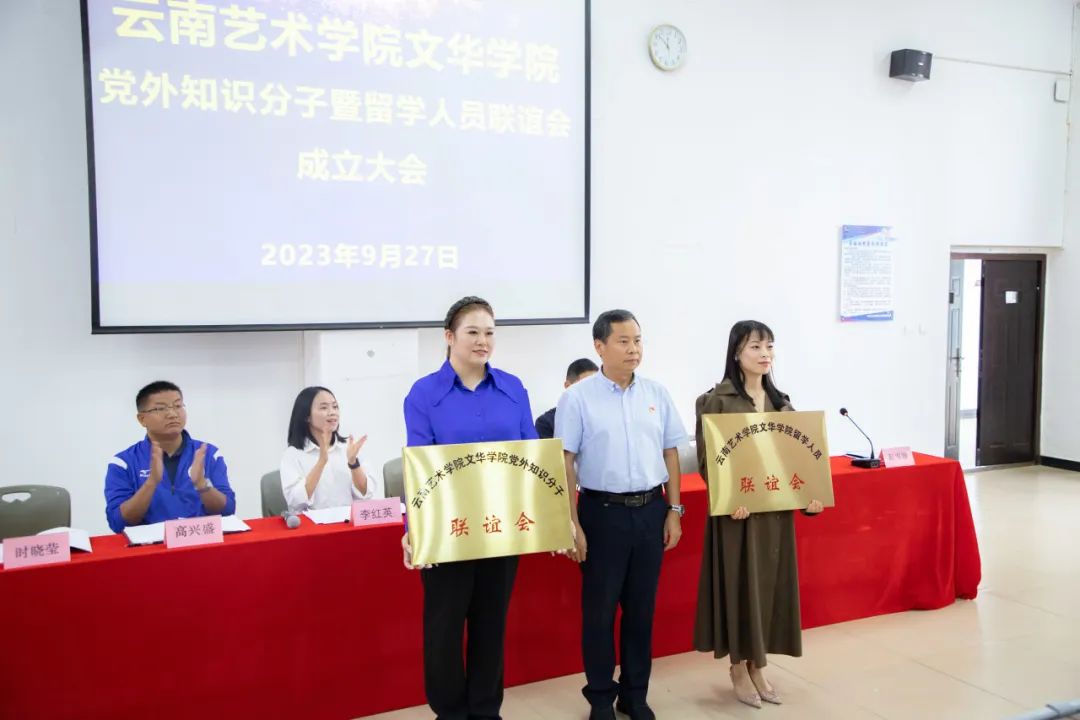 党委书记朱发刚为云南艺术学院文华学院党外知识分子联谊会、留学人员联谊会授牌。