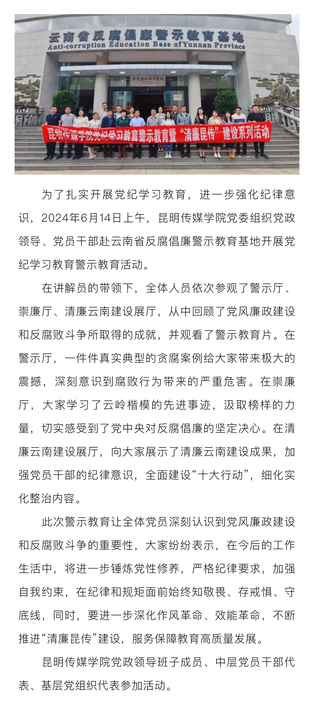 bb贝博艾弗森官网党政领导、党员干部赴云南省反腐倡廉警示教育基地开展警示教育