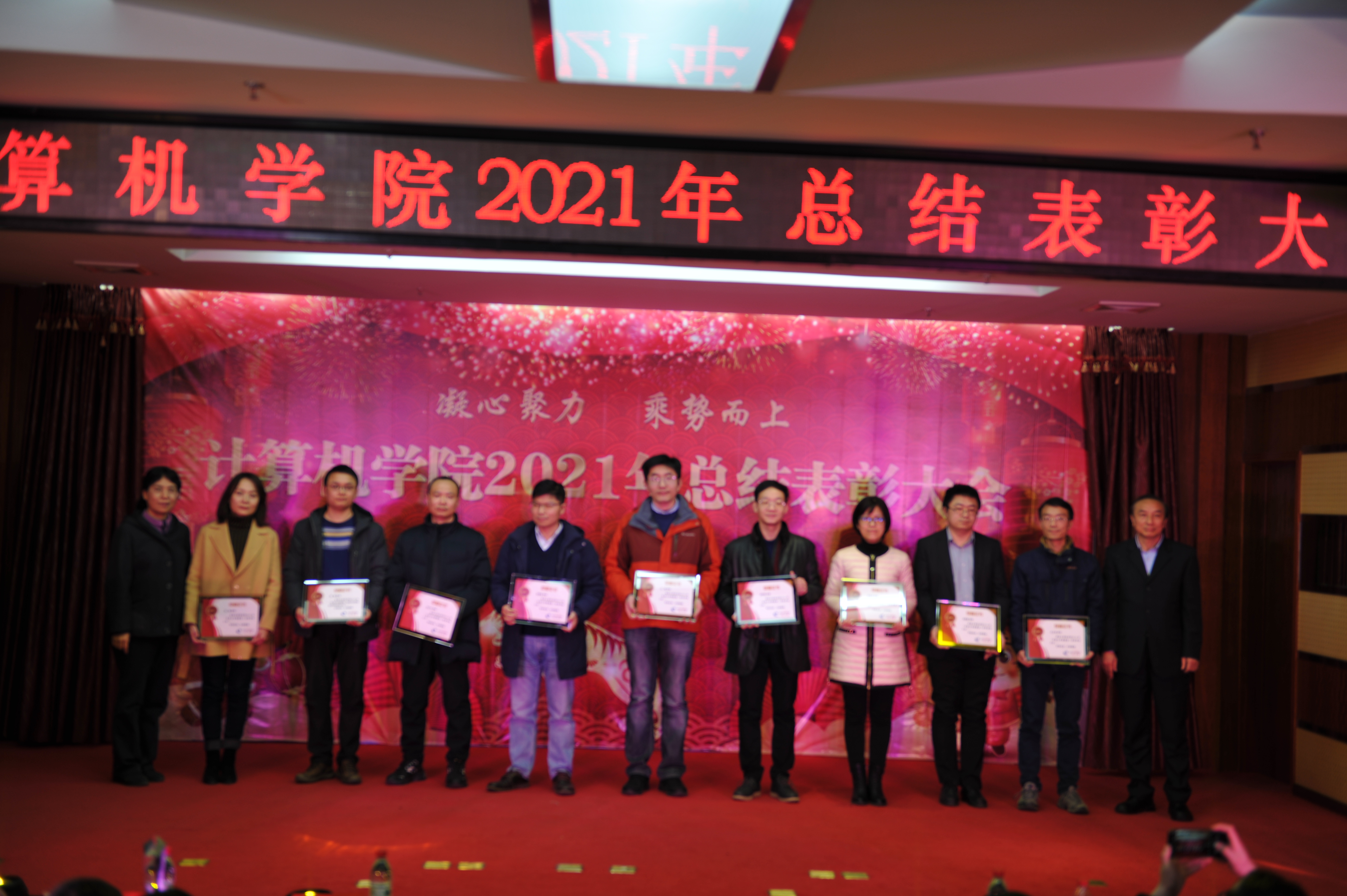 随后,表彰大会在喜庆的音乐和热烈的祝贺声中拉开序幕。大会表彰了在人才培养、科学研究、管理服务等工作中致力于学院发展的优秀教职员工99人,179人次。其中表彰奖项包括:师德标兵3人,特别贡献奖4人,杰出教学贡献院长奖10人,本科生优秀指导教师奖10人,优秀导师奖18人,留学生优秀任课教师4人,留学生研究生优秀指导教师4人,高水平论文奖16人,科研经费领先奖10人,科研经费进步奖10人,科研成果突破奖1人,科研项目突破奖1人,成果转化突破奖1人,人才称号获得者4人,省级以上奖项获得者1人,招才引智奖8人,工程教育认证工作奉献奖13人,特色化示范性软件学院申报工作奉献奖9人,学科评估工作奉献奖13人,工会活动奉献奖6人,实习实训奉献奖1人,网络改造奉献奖1人,优秀班级导师15人,优秀辅导员6人,优秀实验员2人,管理服务金牛奖8人。颁奖嘉宾分别为优秀个人逐一颁发荣誉证书并合影留念。