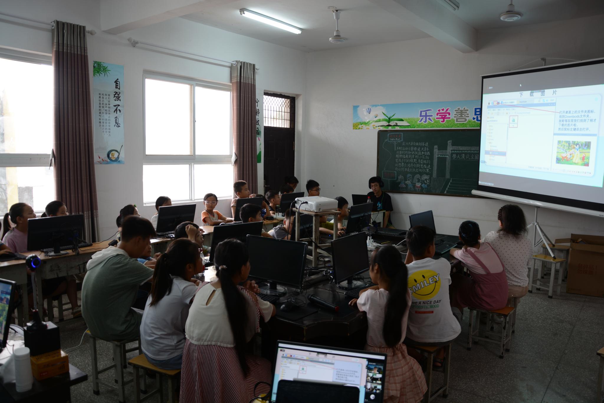 团队通过“云端+线下”的形式开展自编课程教学,由内容组成员进行云端教学,线下实践组成员进行现场管理、解惑,在为期七天的时间内,讲解了计算机基础知识,教会了孩子们计算机基本操作、打字以及WORD、EXCEL和PPT等基础软件的应用。