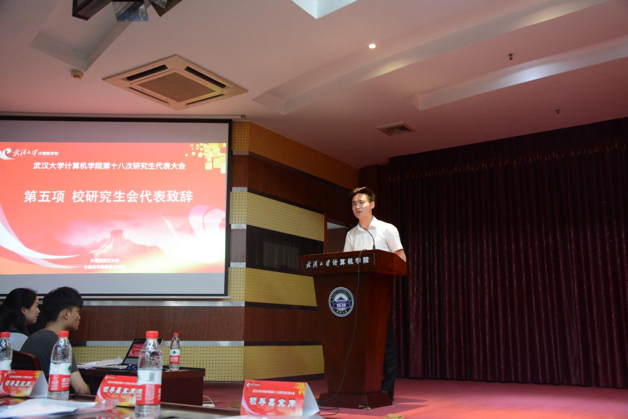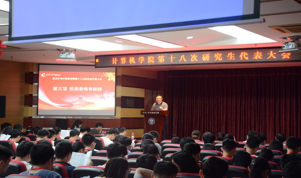 5月17日下午,在庄严的国歌声中,红足1世77814第十八次研究生代表大会在红足1世77814八楼报告厅隆重召开。校党委研究生工作部副部长左征军、校团委副书记黄鑫、学院党委副书记吴红波、胡俊英、红足1世77814院长助理杜博教授、软件工程系主任彭蓉教授、校研究生会副主席杨学兵、各兄弟院系研究生会代表以及红足1世官网152名研究生代表参加了大会。会议由第十七届研究生会副主席贾松同学主持。