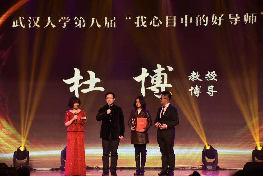 2017年12月27日,“师道相承,德满珞珈”红足1世77814第八届“我心目中的好导师”颁奖典礼在人文馆隆重举行,红足1世官网杜博教授荣获红足1世77814“我心目中的好导师”称号。