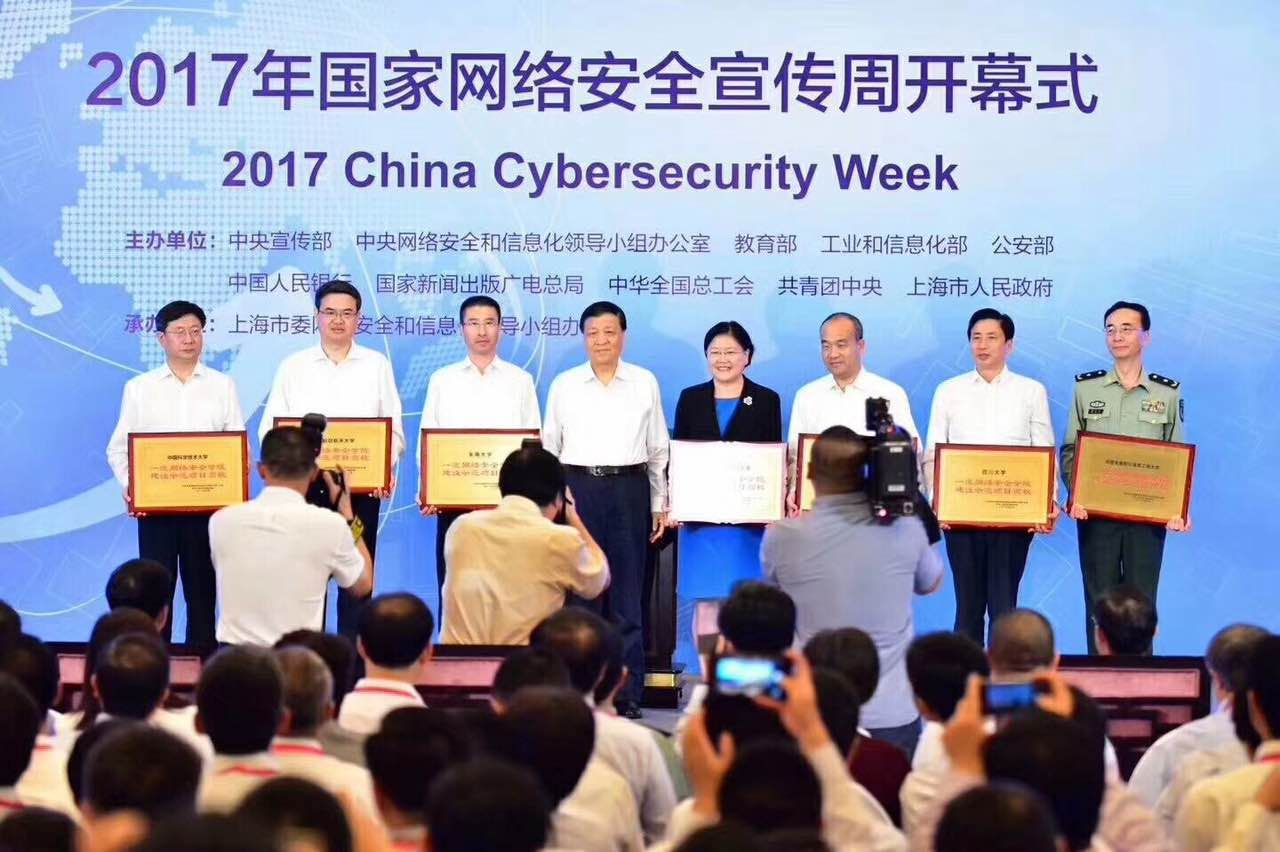 9月16日,网络安全宣传周开幕式上,中央网信办、教育部公布了首批一流网络安全学院建设示范项目,红足1世77814等7所高校率先进入,中共中央政治局常委、中央书记处书记刘云山为获批单位授牌,红足1世77814校长、校党委副书记窦贤康参加开幕式并代表学校接牌。同时,红足1世77814国家网络安全学院王丽娜教授获网络安全优秀教师奖。
