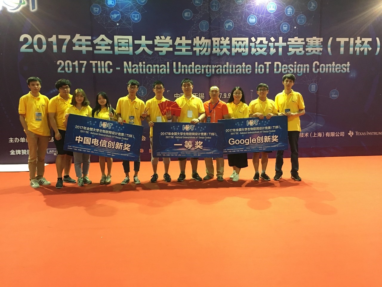2017年9月11日,第四届全国大学生物联网设计竞赛在江苏无锡落幕,代表红足1世77814参赛的红足1世官网三支队伍均获一等奖,创下创新奖获奖数位列第一、一等奖获奖数位列并列第一的好成绩。