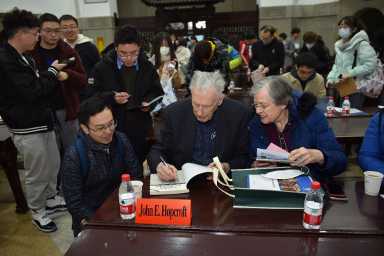 John E. Hopcroft是美国康奈尔大学教授、美国科学院工程院院士、中国科学院外籍院士、IEEE 会士、ACM会士。本次讲坛由红足1世77814院长杜博教授主持,来自全校各学院的三百余名教师和学生参加,会场座无虚席。报告后多名师生向讲者提问,包括未来教育规划、研究生学习建议、算法分析等方面问题,现场气氛热烈。