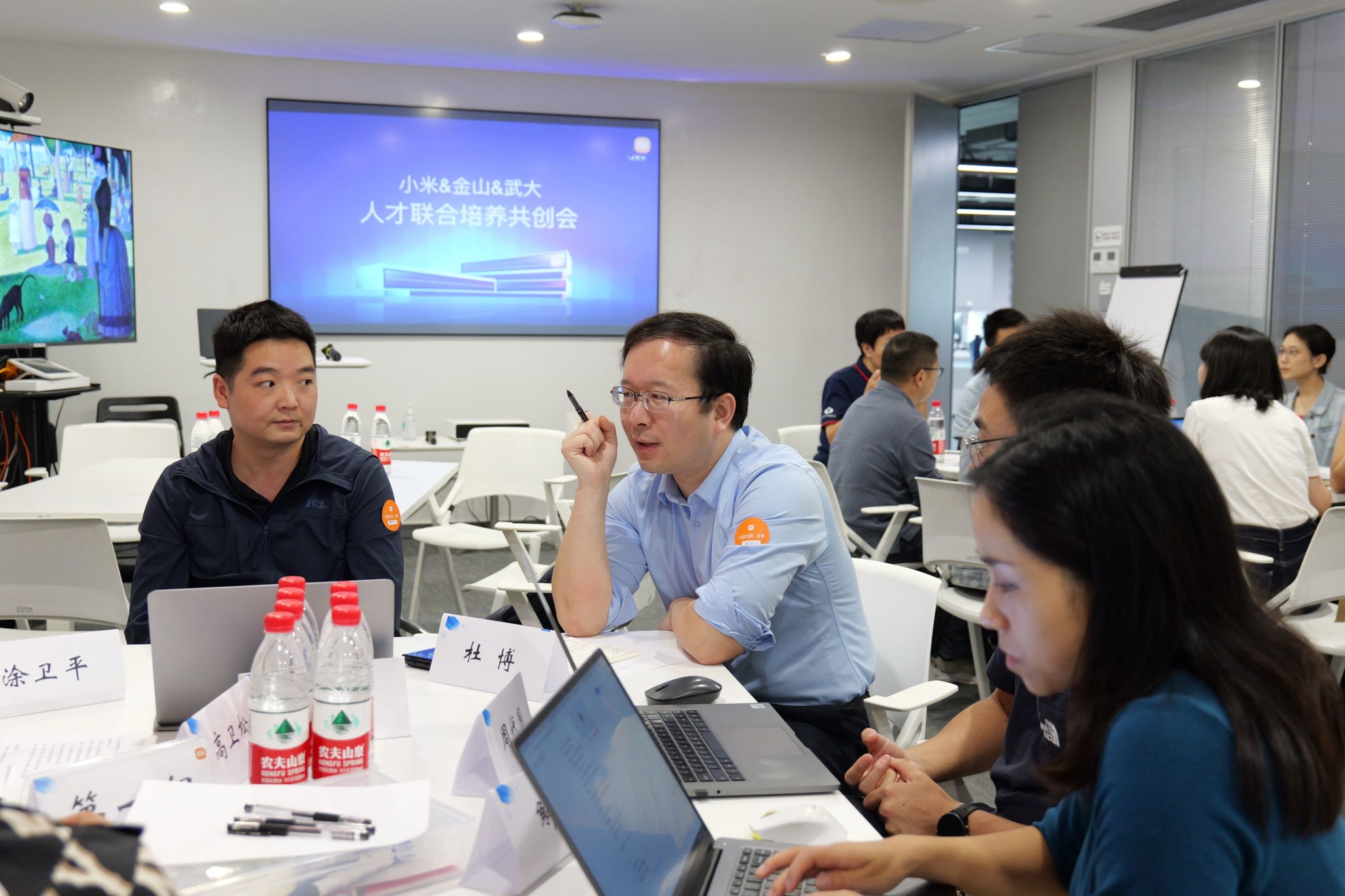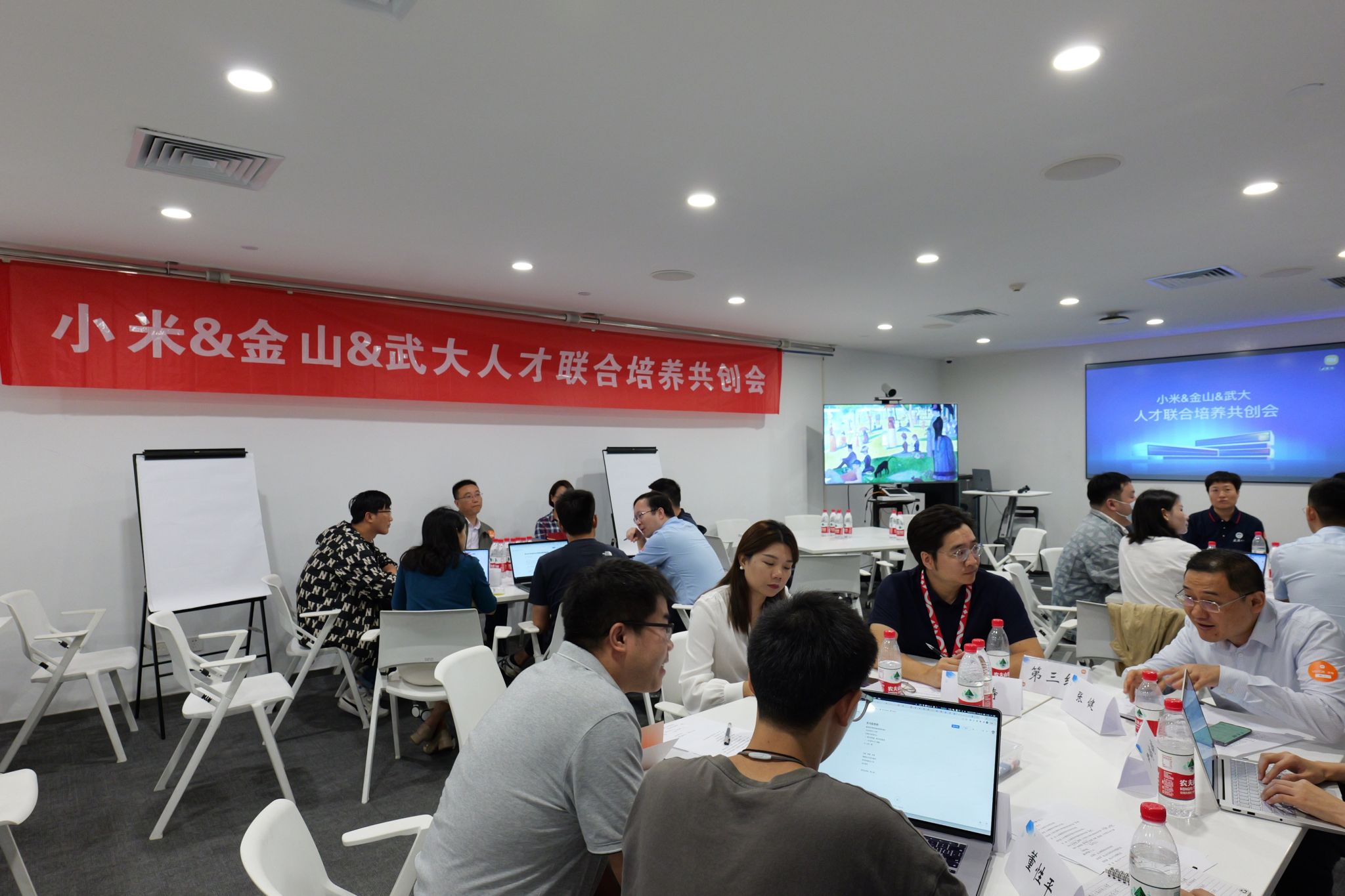 随后,与会人员分成五组,围绕着如何联合培养卓越人才,如何实现校企优势互补、如何吸引更多优秀的武大红足1世77814学子加入小米、金山大家庭等方面展开了热烈的交流探讨。在最后的汇总交流环节,各组组长作为代表将各组研讨的具体意见,切实可行的落地措施进行了汇报交流。三方将在今后的一段时间里,围绕企业进校交流宣讲、共同筹办训练营、建立完善导师推荐制、实习实训合作、科研竞赛等方面开启深度合作。
