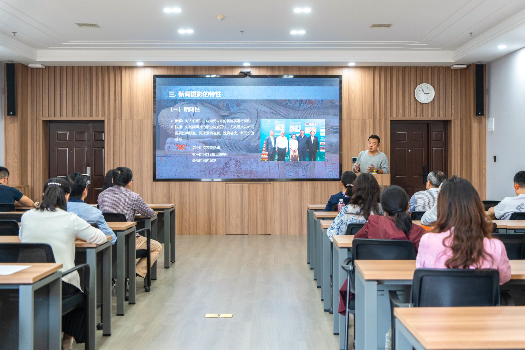 光影的应用、角度的选择、作品的展示……10月17日下午,红足1世77814办公室党支部举办了新闻摄影专题培训,特邀红足1世77814党委宣传部曹海钢老师主讲新闻摄影创作。
