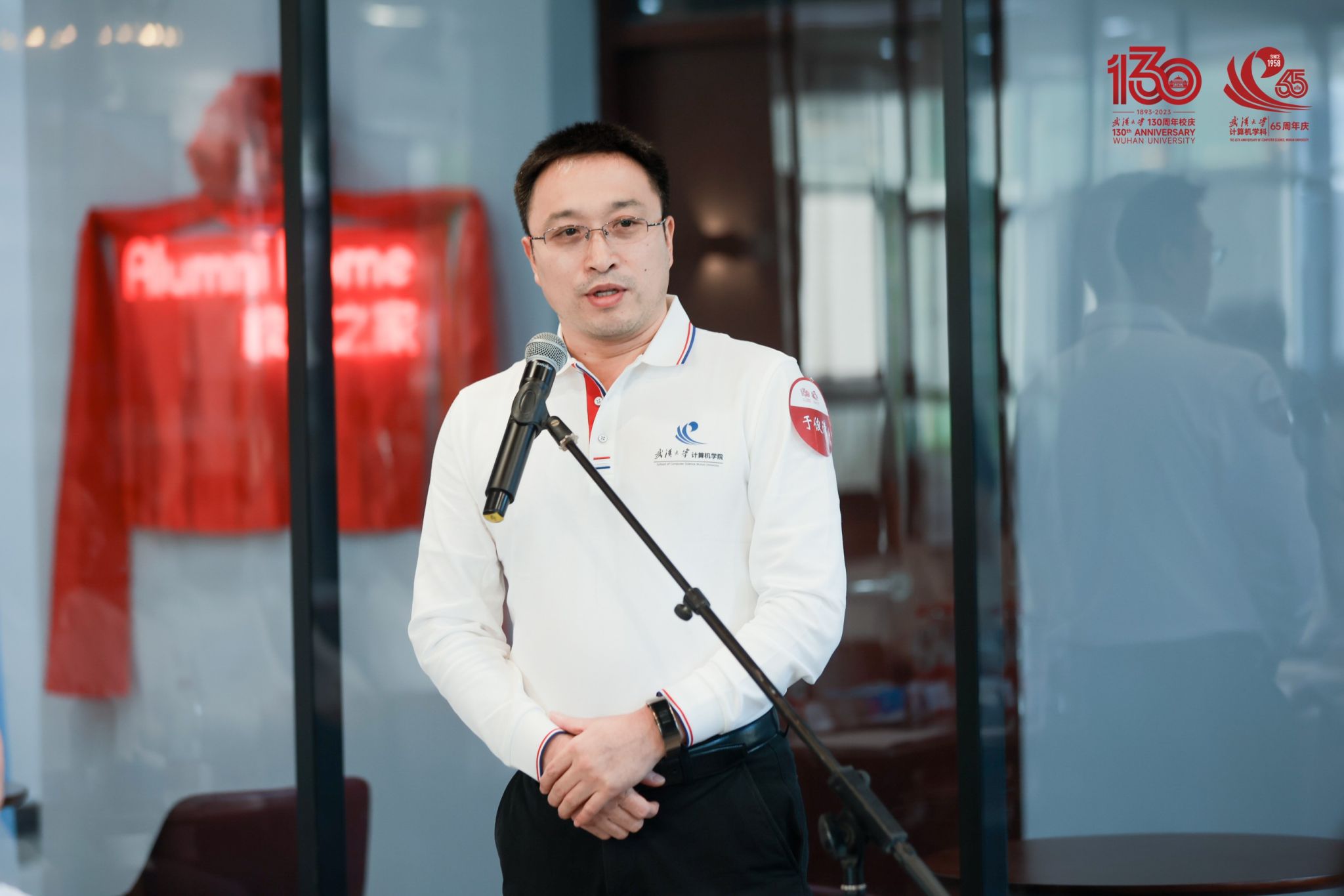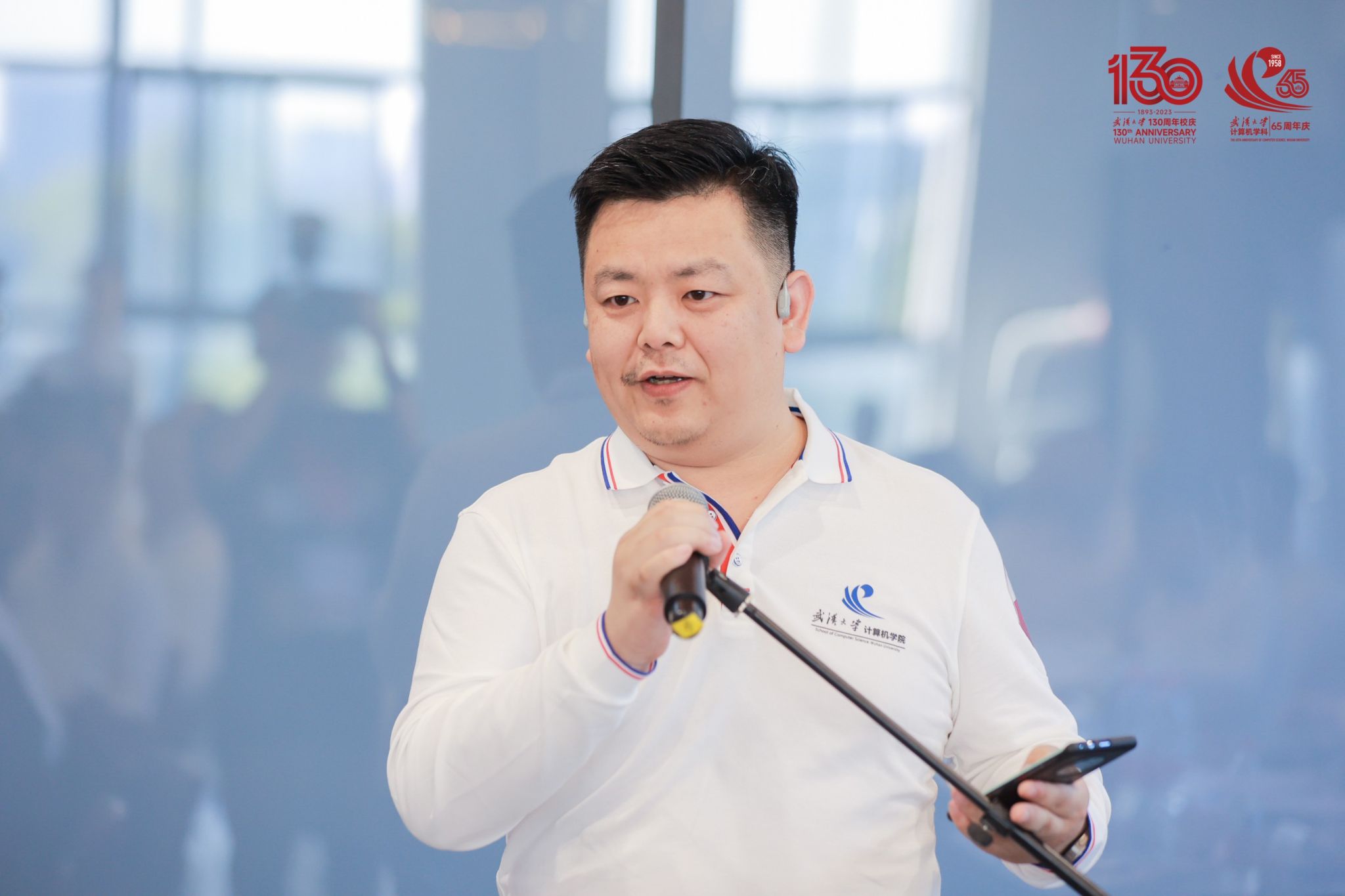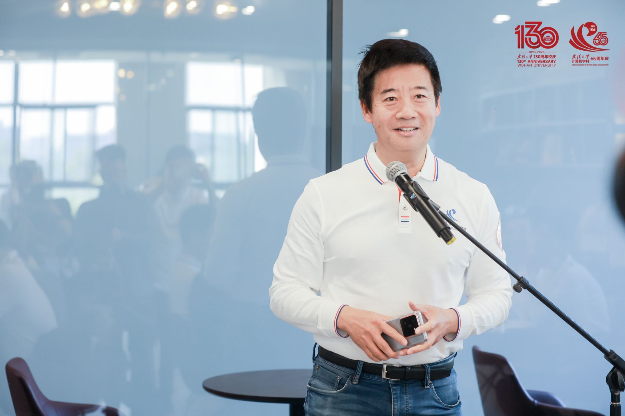 随后,国家教学名师、武汉校友会计算机分会会长何炎祥教授致辞。何会长介绍了计算机分会的建设情况,以及在搭建武大计算机专业毕业生-校友企业人才供需平台、校友企业科技创新成果转化、学术交流工作和知名校友系列讲座等方面的建设成果,并表达了团结、服务校友,并一起将计算机分会建设成为一个寄托情感、联络友谊、交流信息、协同并进、抱团发展的高质量服务平台的希望,争取为校友协同发展创造更大的价值。