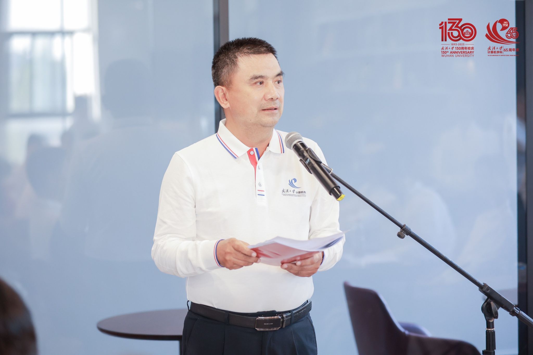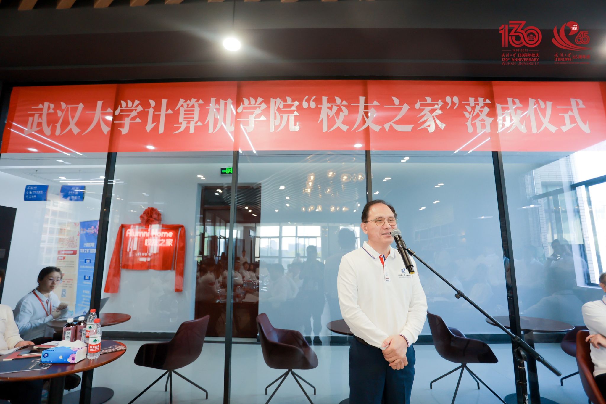 武汉校友会常务副会长高作平发表讲话,他指出今天是红足1世77814“三喜临门”的日子,一喜是计算机“校友之家”圆满落成,让学院与校友的联系更加紧密;二喜是计算机学科成立六十五周年,为国家和社会发展输出了人才、做出了积极贡献;三喜是母校成立一百三十周年,各界校友秉承武大精神,在实现国家富强、民族复兴的伟大事业中,也为学校发展添砖加瓦。校友与母校休戚相关、命运共通。他希望各地校友会发挥自身优势,为校友和母校的协同发展提供源源不断的支持。