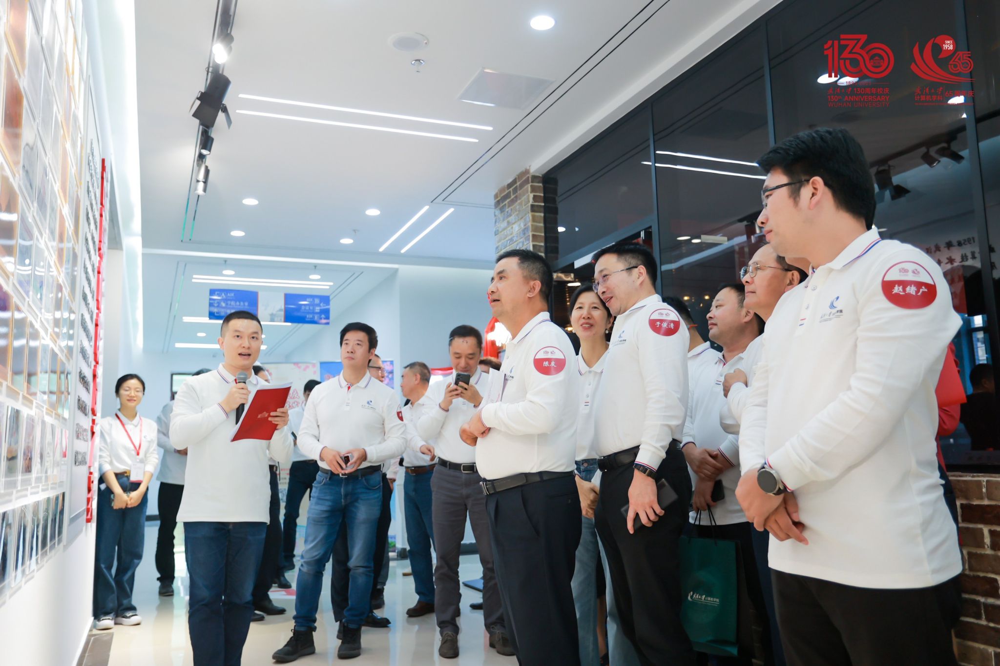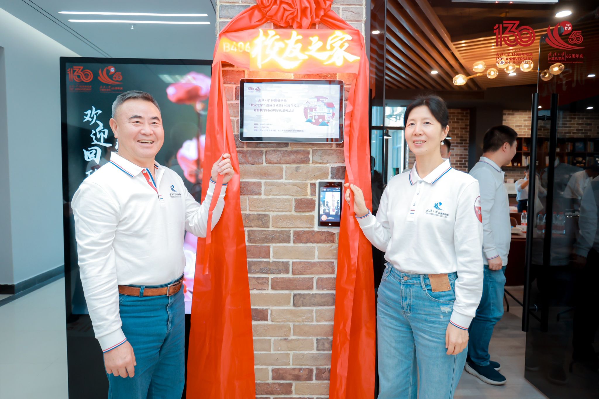 在热烈的气氛中,本场活动迎来了最激动人心的揭牌仪式环节。与会校友和嘉宾共同移步到“校友之家”门口观礼,由学院党委书记边金鸾与何炎祥会长为“校友之家”揭牌。伴随着齐声倒数,红色绸布逐渐揭开,“校友之家”门牌精彩呈现,现场掌声与欢笑声此起彼伏,与会人员心潮澎湃、激动不已。随后,众校友与嘉宾跟随计算机分会副秘书长李令参观校友文化墙,在各届毕业照前驻足观看,思绪也被带回往昔,无论何时回想起,在珞珈山求学的青春岁月都依旧绚丽。在欢庆氛围中,与会校友同唱校歌并合影留念,共祝“校友之家”落成仪式圆满礼成。