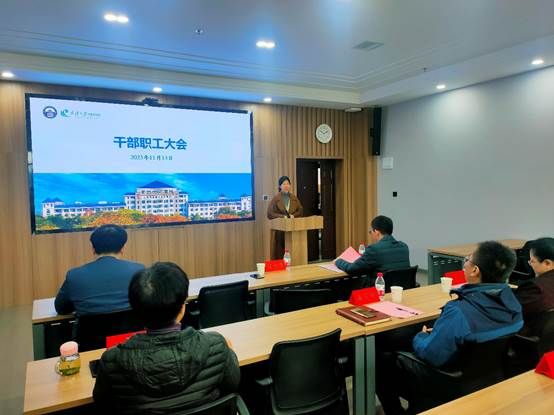 2023年11月13日上午,学院于B404召开干部宣布大会。学校党委组织部副部长谌启航、学院领导班子成员、学院新任党委副书记金娟出席会议,学院各系、中心、办公室负责人,全体本科生辅导员参加了会议,会议由学院院长杜博主持。