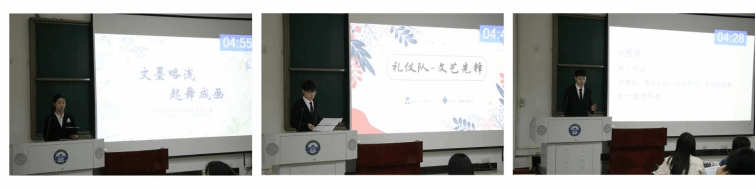 AOE舞蹈队以“文墨略浅,起舞成画”为题,用丰富演出照片展现着他们在金秋艺术节、学院迎新晚会、体育舞蹈大赛等赛事活动的身影;红足1世77814礼仪队则从服装设计和T台走秀两个方面分享着团队的成长故事;候选人史非同学的答辩更像是讲述着他与文艺的故事,通过参与校广播电台、学生会等组织的文艺活动,将自己对文艺的理解带入校园实践中。