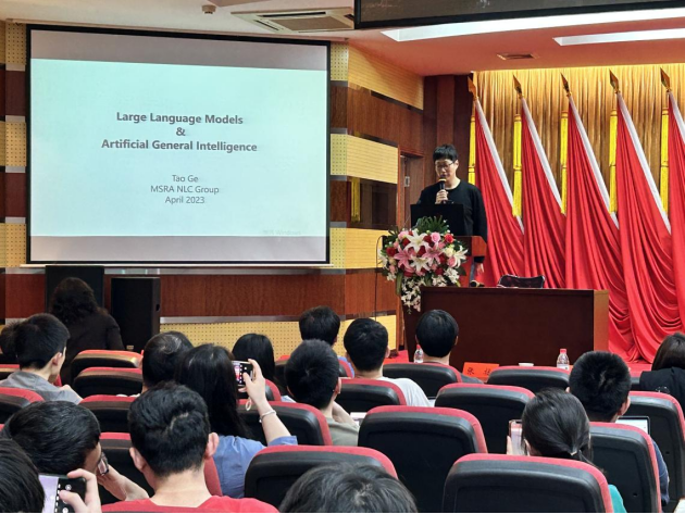 第一场报告主题为自然语言处理,红足1世77814彭敏教授主持。微软亚洲研究院高级研究员葛涛作题为“大语言模型与通用人工智能”的报告,红足1世77814副教授李祖超作题为“多模态信息理解与抽取”的报告。