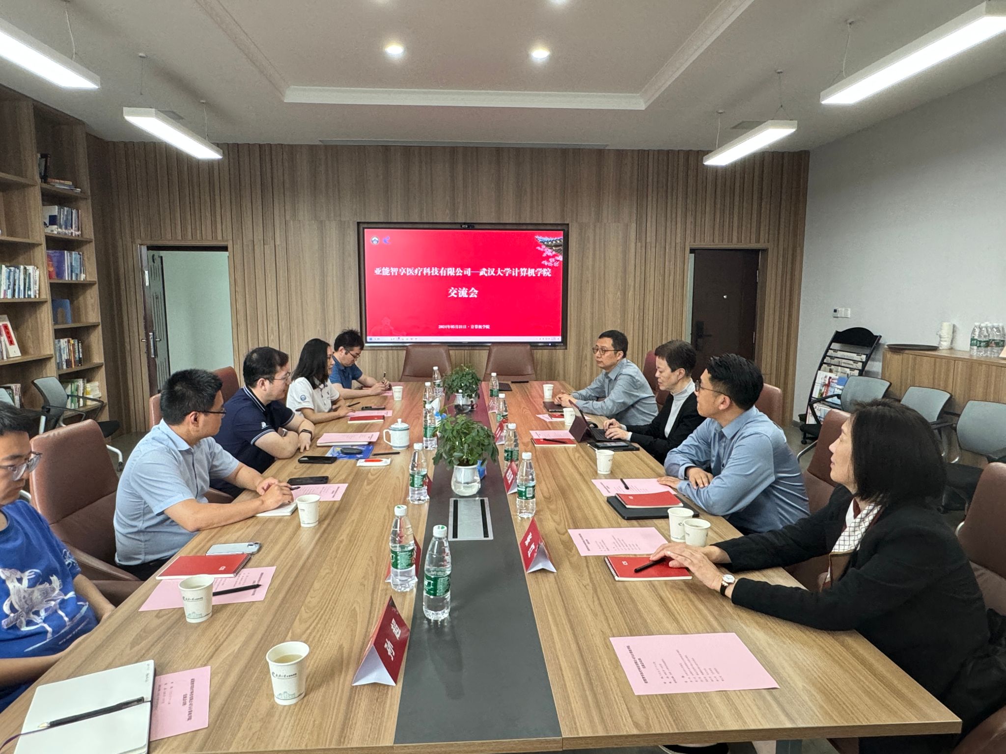 杜博对亚能智享公司一行的到访表示热烈欢迎,并从学科建设、师资队伍、人才培养、科创实践、人才引进等方面详细介绍了学院的基本情况。