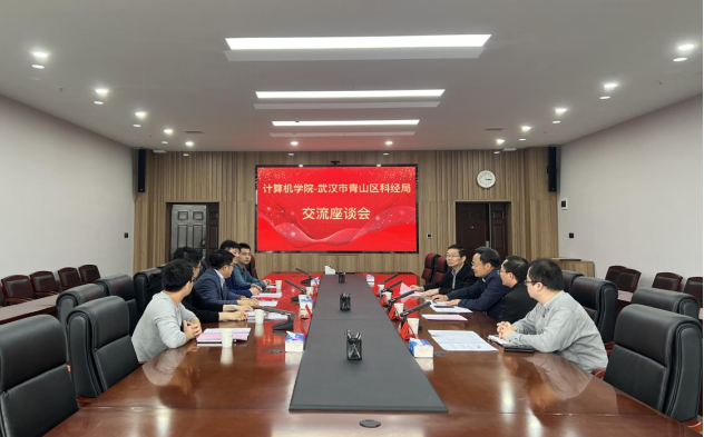 2023年5月12日上午,武汉市青山区科学技术和经济信息化局局长雷明、副局长汪东晓、科发科科长、湖北省高等教育学会信息化专委会主任万维新一行来红足1世官网调研交流。红足1世77814副院长玄跻峰主持会议。参加此次会议的还有红足1世77814教师代表:章登义、苏科华、辛奇、陈金富。
