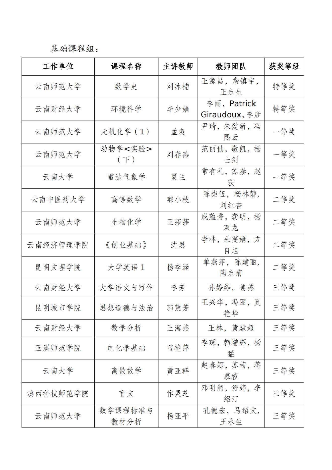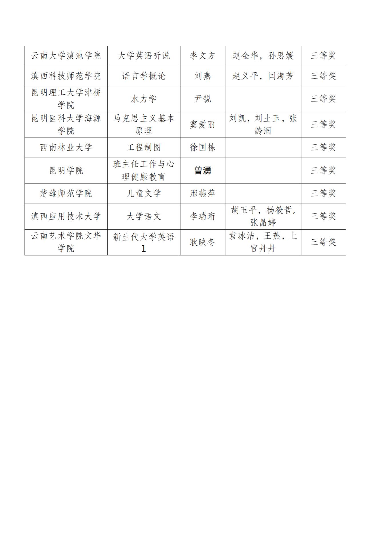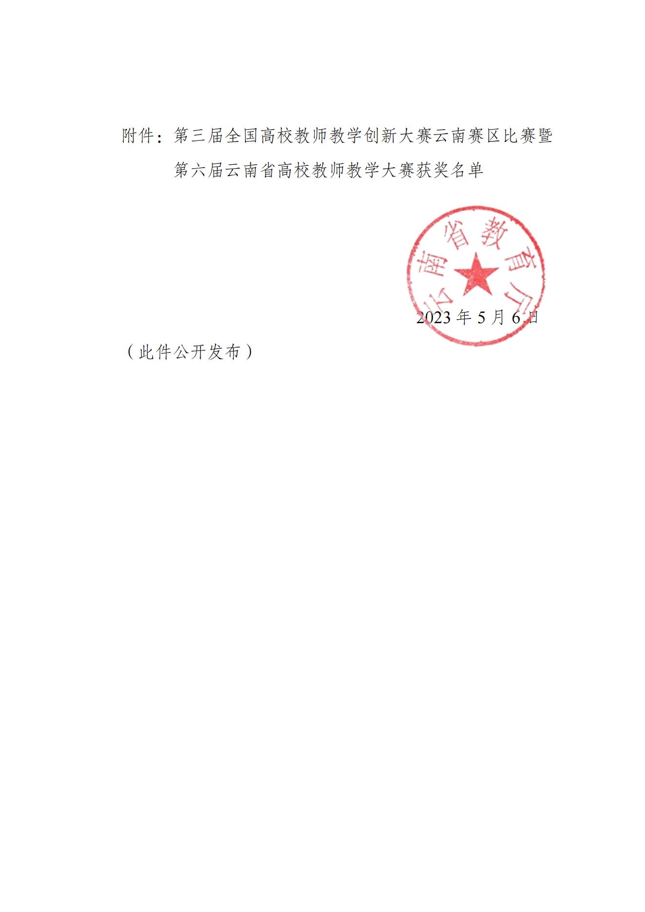 云南省教育厅关于公布第三届全国高校教师教学创新大赛云南赛区比赛暨第六届云南省高校教师教学大赛获奖结果的通知